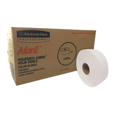 - Higiénico jumbo, caja con 6 bobinas de 500m x 9cm